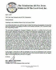 -A Letter of Apology – Rev. Archbishop Mario I. Quitoriano