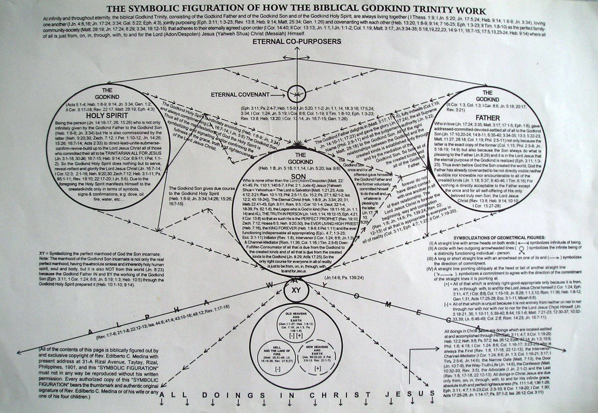 5. That vis a vis all of creation, God the Father is the directly invisible, inaudible, inaccessible/unapproachable and unknowable God, and God the Son, Christ Jesus Himself is the DIRECTLY SELF-REVEALING, SELF-IDENTIFYING and SELF-HUMBLING LORD (YAHWEH, Adon, Kyrios) God (Elohim) who being the LORD (YAHWEH, Adon, Kyrios) God (EL) Almighty (SHADDAI) is graciously, truthfully and righteously always functioning as ALL in all, giving due course to everyone in all of reality and justly satisfying all of all, and, God the Holy Spirit is the Symbolically Self-Manifesting God whose entire Person, works and ministries only proceed unidirectionally from, on, in, through, with to and for the Almighty Lord God the Son, Jesus Christ.
